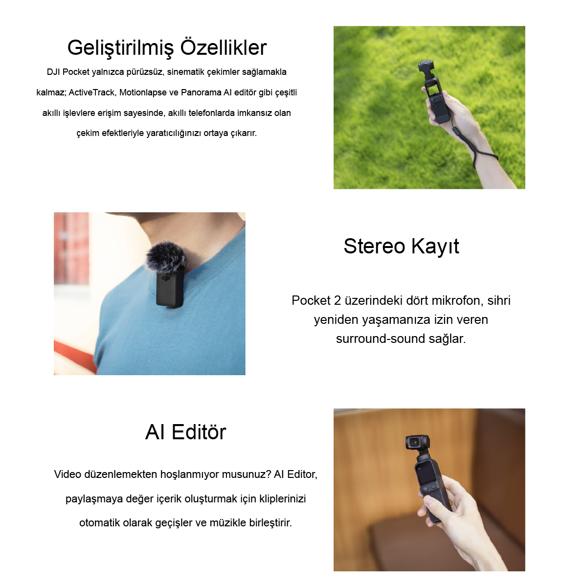 | Uygulama | DJI Mimo (iOS 11+, Android 7.0+) |