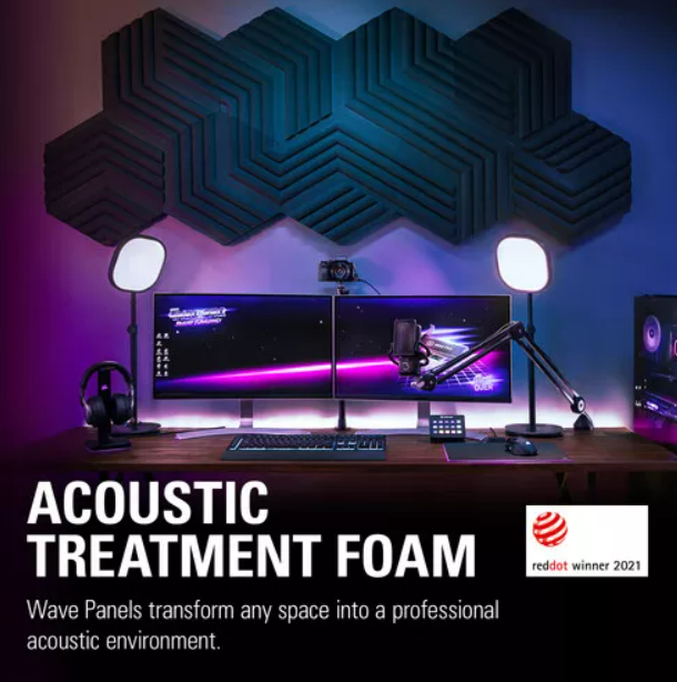 Elgato tarafından üretilen Wave Foam Akustik Paneller Başlangıç Seti, hafif ve kullanımı kolay, modüler bir ses emme sistemidir. Bu set, altı hafif panel ve altı EasyClick çerçevesinden oluşur. Çift yoğunluklu köpük ile altıgen çerçevelerden oluşan Wave sistemi, hem sesi yakalamada hem de tercih ettiğiniz şekil ve tarzda düzenlemede oldukça etkilidir.