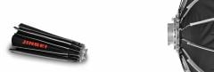 Sekizgen Jinbei KE Quickly Open Octabox , yumuşak ve doğal ışığı ile moda, portre ve moda çekimleri için ideal ana ışıktır ve gözlerde doğal görünümlü bir refleks ışık oluşturur. Octabox, Jinbei/Bowens ring Mount uyumlu ve birçok akülü / stüdyo flaş ünitesine uygun bağlantıya sahiptir LED sürekli ışık lambaları için uygundur. Çubukların tıklama mekanizması sayesinde, ışık şekillendirici hızlı ve kolay bir şekilde kurulabilir ve stüdyoda veya mekanda hemen kullanıma hazırdır.. Bunu yapmak için, çubukları yerine oturana kadar gerin ve Octabox'u ışık kaynağına monte edin - tamam! Bu, en kolay şekilde, karşıt çubukları her zaman birbiri ardına sıkıştırırsanız işe yarar. Softbox'ın yeniden montajı da aynı derecede kolaydır: Hız halkası tabanındaki münferit çubukları hafifçe kaldırırsınız, ilgili düğmeye basarsınız ve ardından çubuğu serbest bırakırsınız.