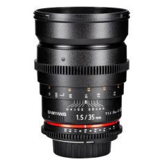 Samyang 35mm T1.5 VDSLR Lens Çok Hızlı T1.5 maksimum diyafram Dişli Odak ve Diyafram Kontrol Yüzükler Çok Katmanlı Kaplama Flare azaltmak için Hibrid Aspherical Lens Elemanı Tam Kapsama oranı Saha İşaretlerin Derinliği Min. "11.8 Odaklama Mesafesi Süngü Dağı Lens Hood